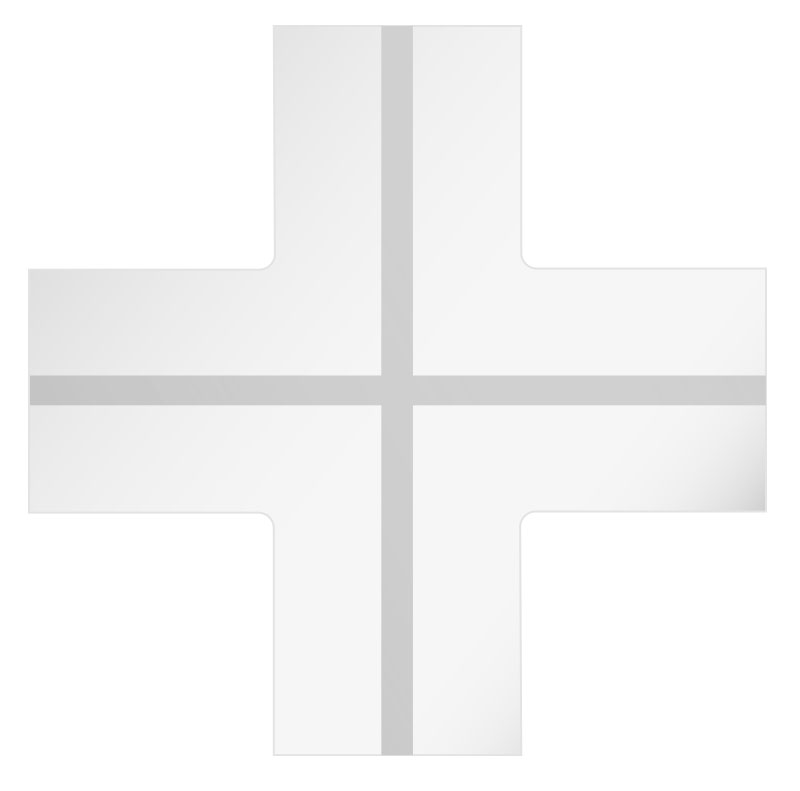 Élément de raccord en « X », composé de plaque de plâtre GypsoARYA HD BA13, intégrant un profilé en aluminium extrudé pour l'insertion d'une bande LED, fourni avec un écran de protection de 18 mm. Pour utilisation intérieure.