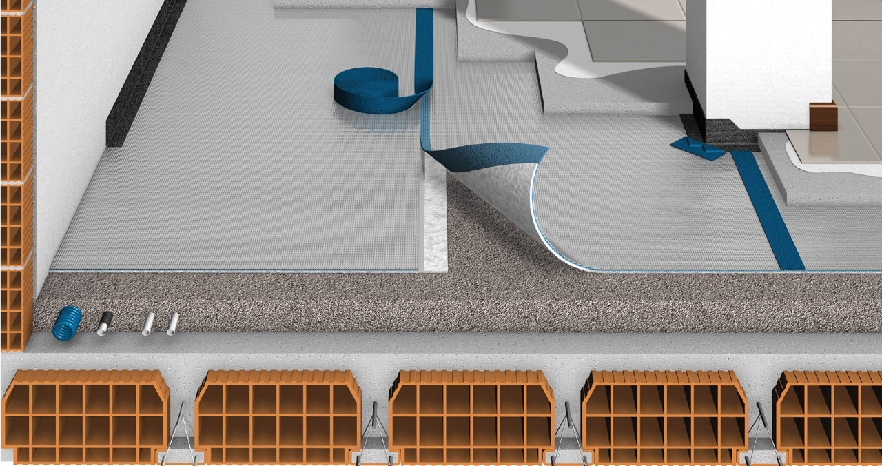 La chape flottante, qui reçoit les chocs, est isolée de la structure du bâtiment . La transmission des vibrations à cette dernière en est donc réduite.