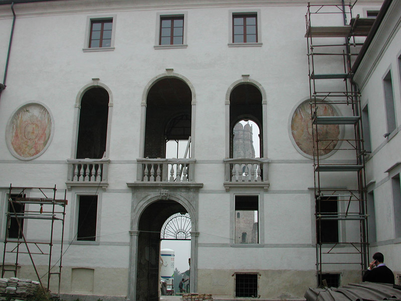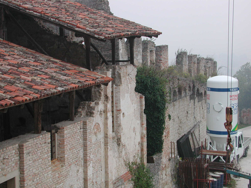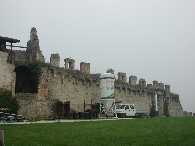 Repère incomparable du panorama collinaire de Trévise à gauche du fleuve Piave, le château de San Salvatore des comtes Collalto avec sa masse de murs et de tours, domine depuis une hauteur ensoleillée l’agglomération de Susegana